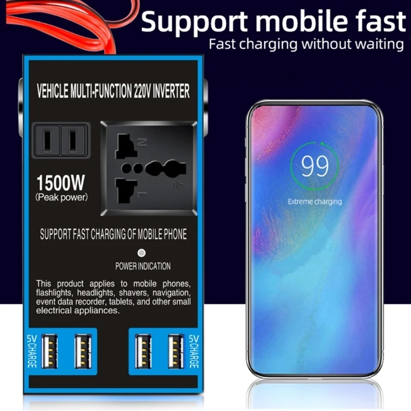 Converts 12V/24V DC from your vehicle battery to 220V AC power.