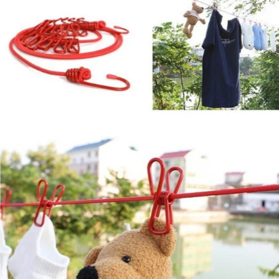 This Elastic Travel Clothesline with Clips is the perfect solution for drying clothes anywhere—at home, outdoors, on balconies, during camping trips, or while traveling. The strong elastic rope stretches easily and provides excellent tension, ensuring your clothes stay secure. It comes with built-in windproof clips that keep garments in place even in strong winds. Lightweight, portable, and easy to set up between trees, poles, or walls, this clothesline is ideal for both indoor and outdoor use.