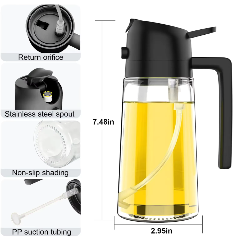 Fine Mist Spray – Ensures even oil distribution for cooking, baking, and grilling.