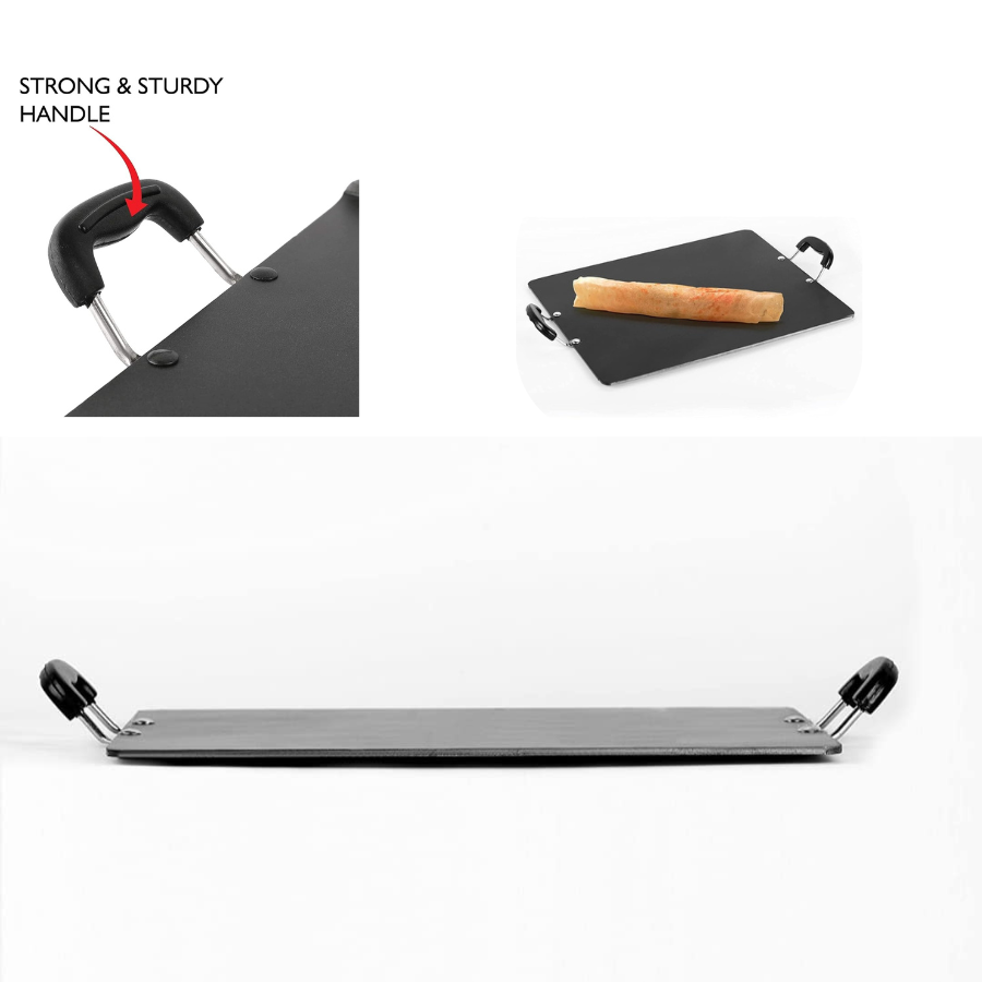 The Mahendraa Non-Stick Pathri Tawa is a high-quality, heavy-gauge flat cookware designed for preparing pathri, dosa, chapati, pizza, paratha, and other flatbreads with ease. Built with a durable 5.0mm thick body, it ensures even heat distribution for perfectly cooked results. Its superior non-stick coating allows for oil-free cooking, healthier meals, and effortless cleaning. Equipped with strong, heat-resistant handles, this tawa is perfect for everyday kitchen use.
