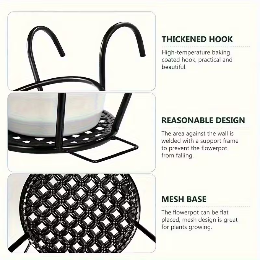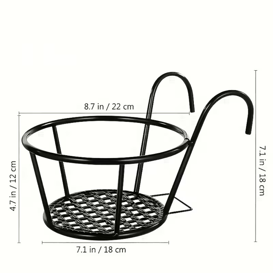 Add a touch of elegance to your balcony or garden with this Metal Hanging Flower Pot Holder. Crafted from durable wrought iron, it provides strong support for your flower pots while enhancing your outdoor décor. Its space-saving hanging design is perfect for railings, balconies, fences, or patios — giving your plants the perfect spot to thrive while saving ground space.
