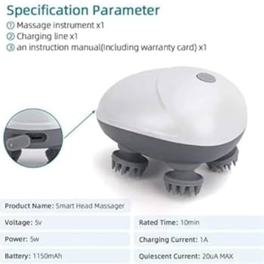 a handheld, rechargeable head massager designed to relieve stress, improve