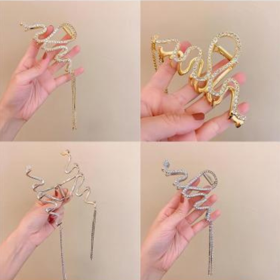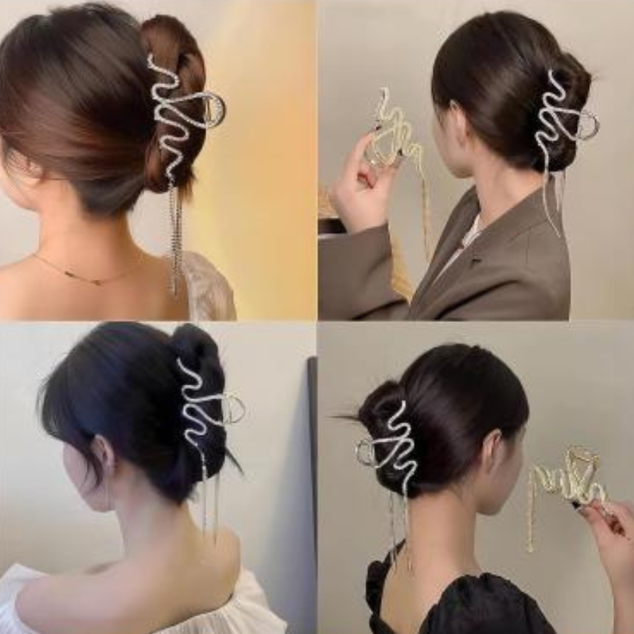 Add a touch of elegance to your hairstyle with this Zigzag Wavy Metal Hair Clip. Designed with a unique artistic wave shape and decorative hanging chains, it instantly elevates any look whether casual, formal, or party-ready. The strong metal grip securely holds your hair in place while giving your bun or updo a stylish, eye-catching finish. Perfect for daily wear, office outfits, special events, and photoshoots.